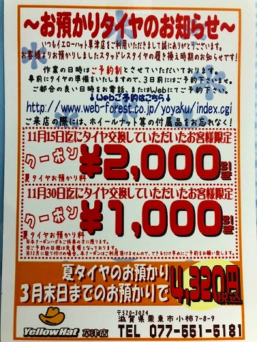 保管場所がなかったり、持ち運びに不便だったり、、、 タイヤの保管場所にお困りではありませんか(´・ω・`) 当店では、タイヤ保管サービスを実施いたしております☆-ヽ(*´∀`)八(´∀`*)ノ ポイントカード会員様で、当店でタイヤ交換作業にご入庫いただける方ならどなたでもOK( ´∀`)人(´∀` )!!!! 国産車・輸入車問いません。 お気軽にスタッフまでお尋ね下さい★ (2017/11/20up)