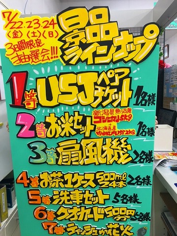 ヽ(=´▽`=)ノ22日(金)・23日(土)・24日(日)の3日間は当店の周年祭ヽ(=´▽`=)ノ 大好評の抽選会、今年もやります∠( ゜▽゜)/ 税込1,000円以上ご購入で抽選券をお渡しいたします♪ ハズレ無し!!!! 一等賞はあの景品ヮ(゜д゜)ォ! 皆様のご挑戦、お待ちしております(・∀・)♡ (2016/07/21up)